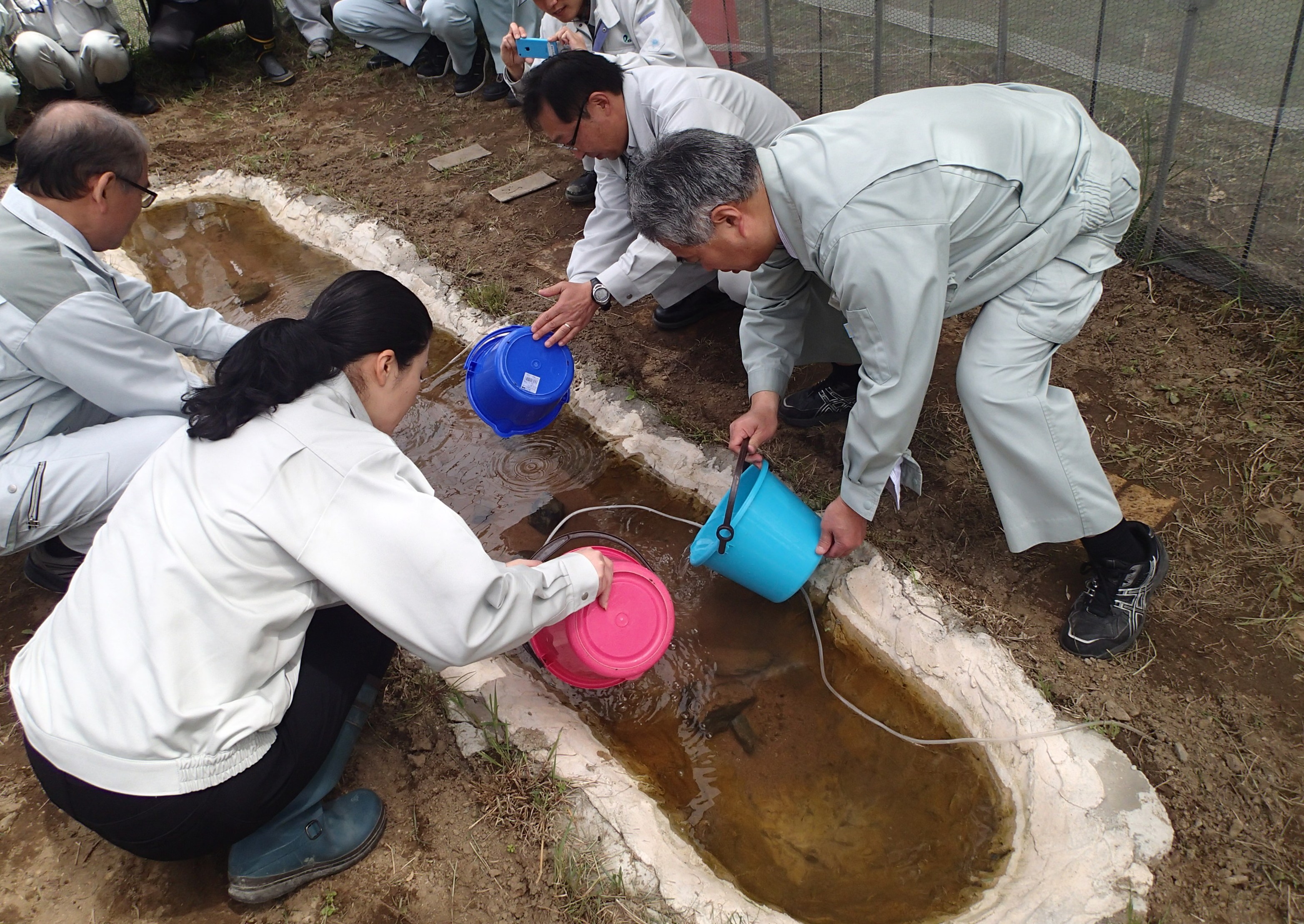 当社が維持管理を受託している石巻浄化センターで5月13日にホタルの幼虫の放流式を行いました。
