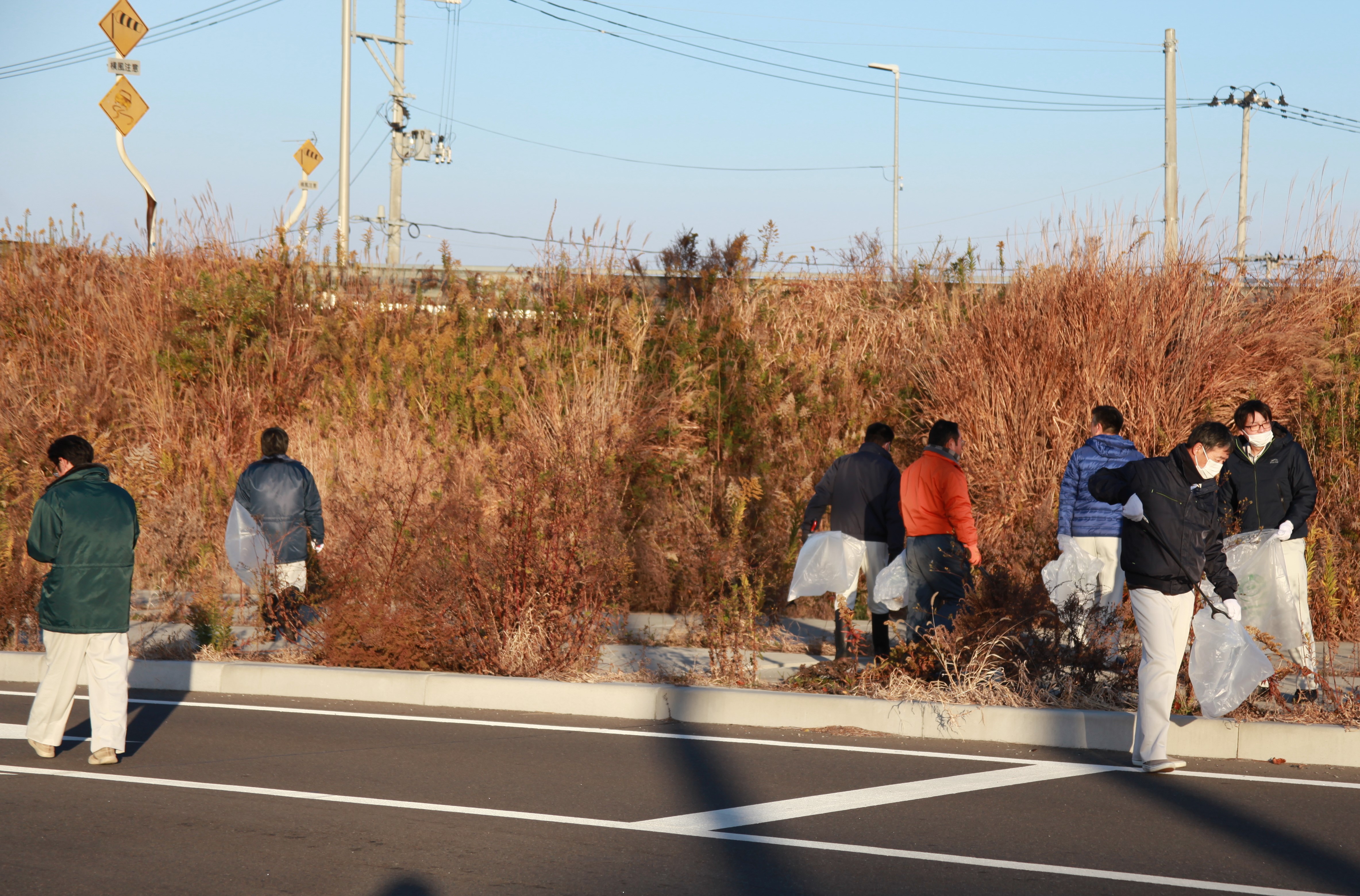 今回で56回目となるスマイルロードプログラムを12月7日に実施しました。 県道石巻・女川線の約400m区間の路面清掃活動を午前7時30分から約30分間、社員46名で行いました。タバコの吸い殻やペットボトル、空き瓶や空き缶など13袋分を収集しました。次回は3月に実施予定です。