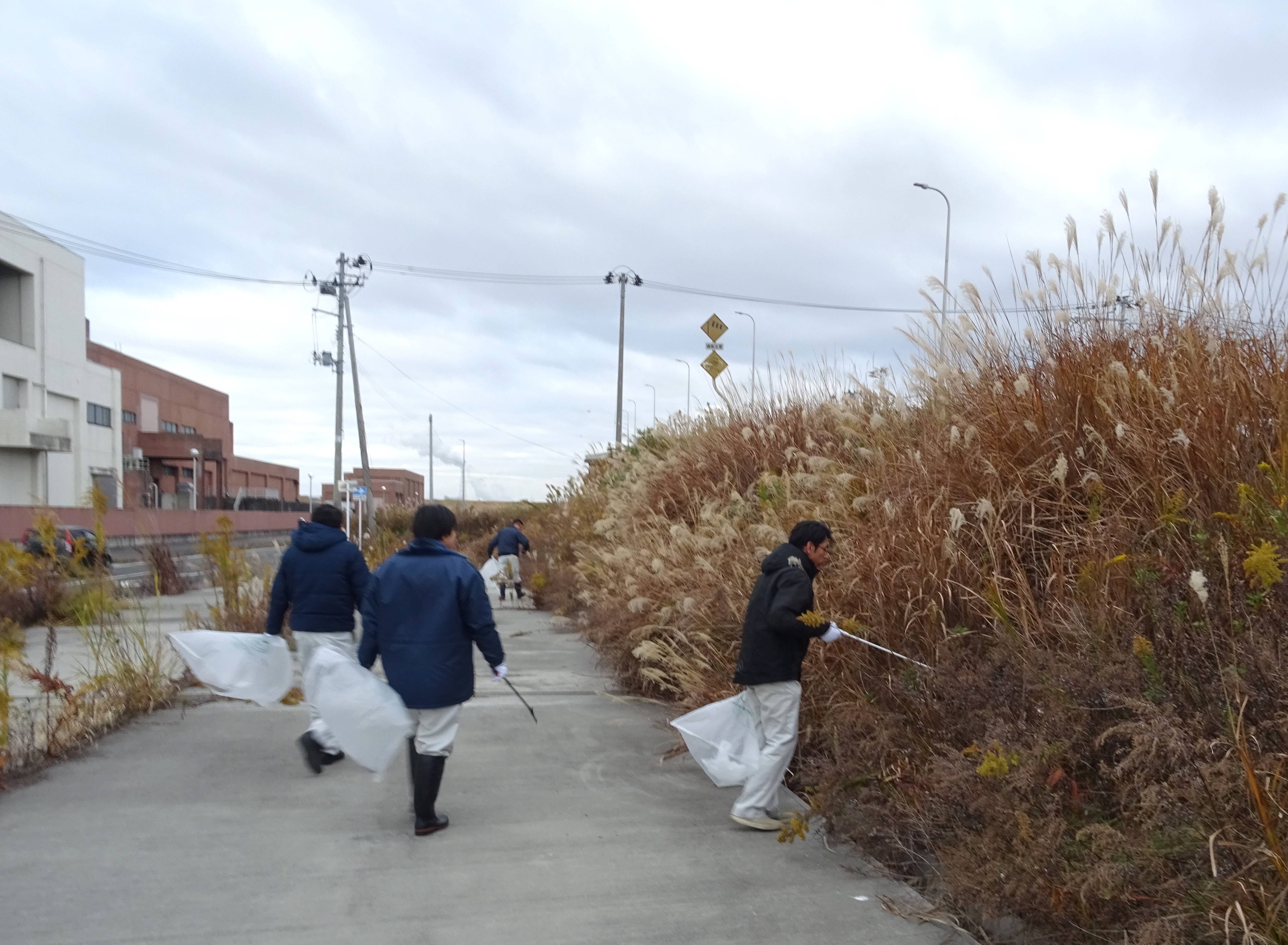 今回で60回目となるスマイルロードプログラムを12月6日に実施しました。県道石巻・女川線の約400m区間の路面清掃活動を午前7時30分から約30分間、社員35名で行いました。タバコの吸い殻やペットボトル、空き瓶や空き缶など9袋分を収集しました。次回は3月に実施予定です。